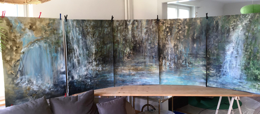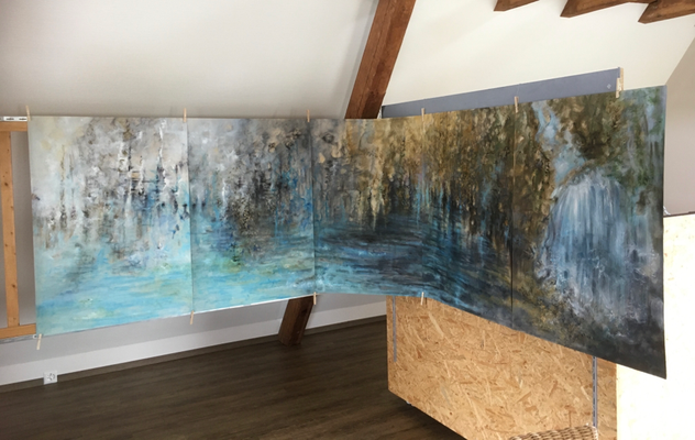 Ölfarbe auf Leine. Ölfarbe auf Graspapier